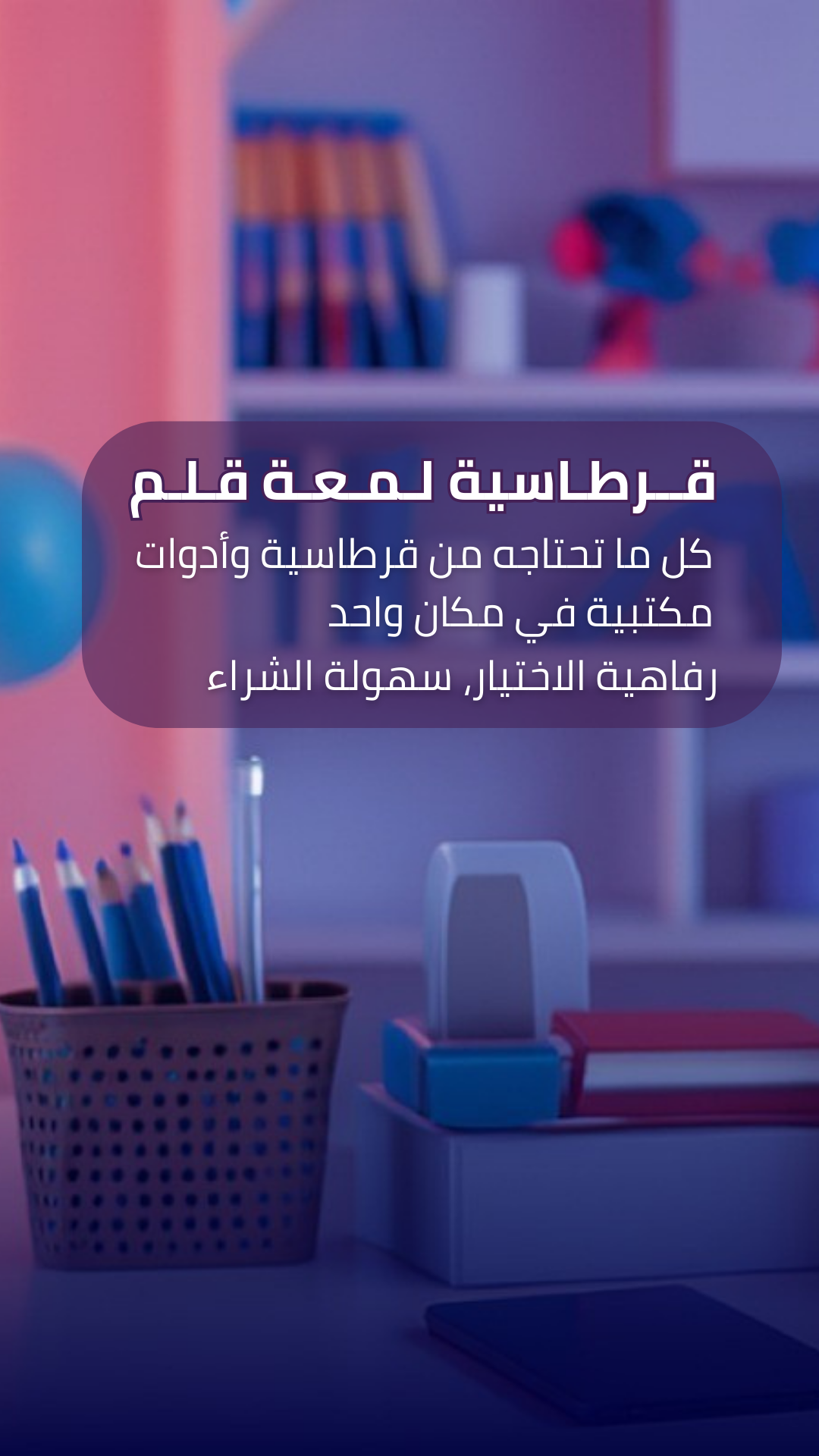 الوجهة الأولى لعشاق القرطاسية والأدوات المكتبية والإلكترونيات في المملكة العربية السعودية، نحن نؤمن أن التفاصيل الصغيرة تصنع فارقًا كبيرًا، لذلك نوفر لكم منتجات عالية الجودة بعناية فائقة لتلبي جميع احتياجاتكم المدرسية والمكتبية والشخصية.