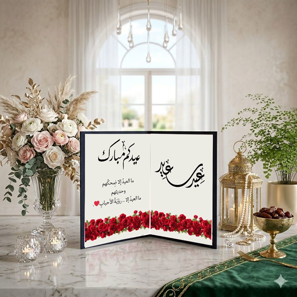 لوحة تهنئة عيد فاخرة بتصميم كتاب مفتوح